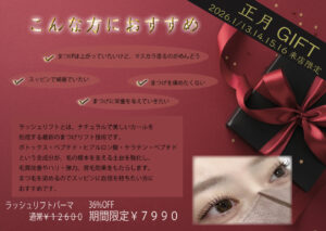 ①まつげパーマ+トリートメント ¥1,990